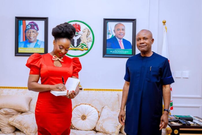 Famous Nigeria writer of global acclaim, Chimamanda Ngozi Adichie, on Monday, visited Enugu State Governor Peter Mbah.