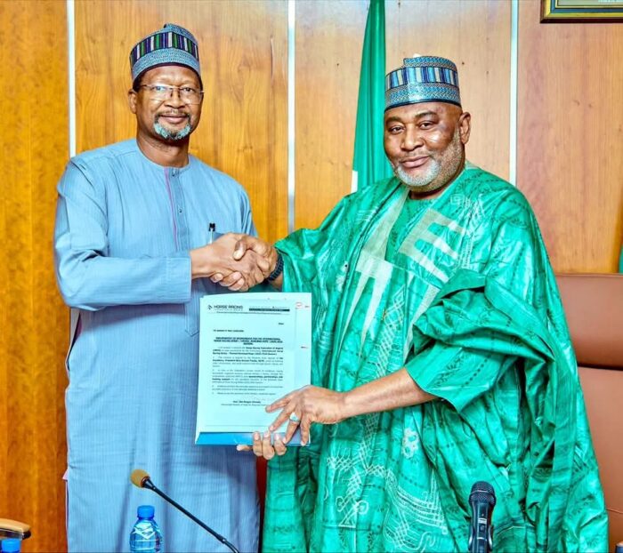 The Minister of State for Regional Development, Uba Maigari Ahmadu, on Wednesday, received the leadership of the Horse Racing Federation of Nigeria (HRFN) led by the Chairman Alhaji Tajuddeen Aminu Dantata, in his Abuja office.